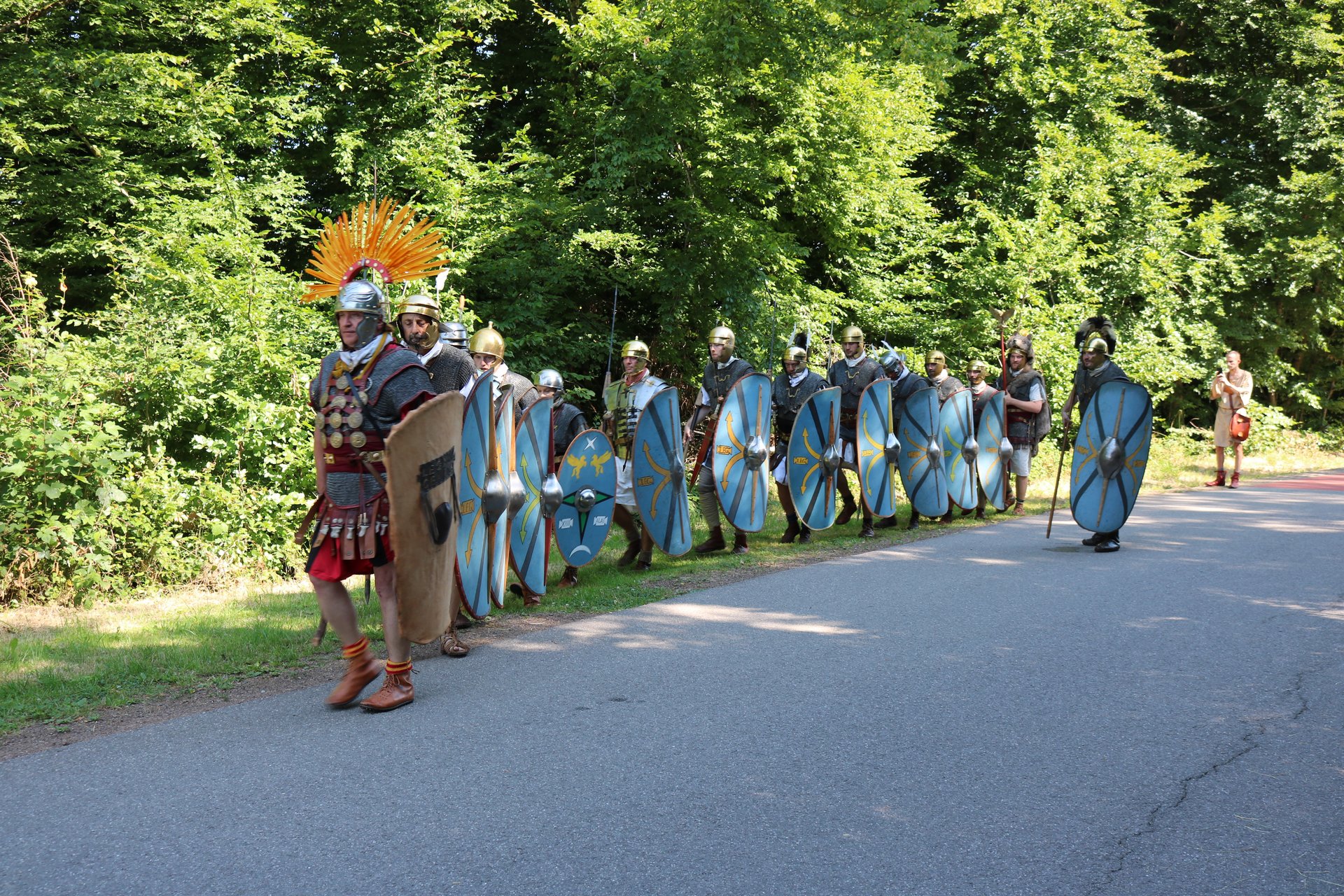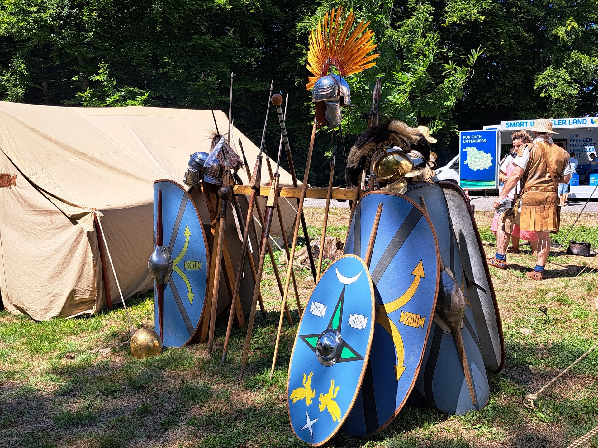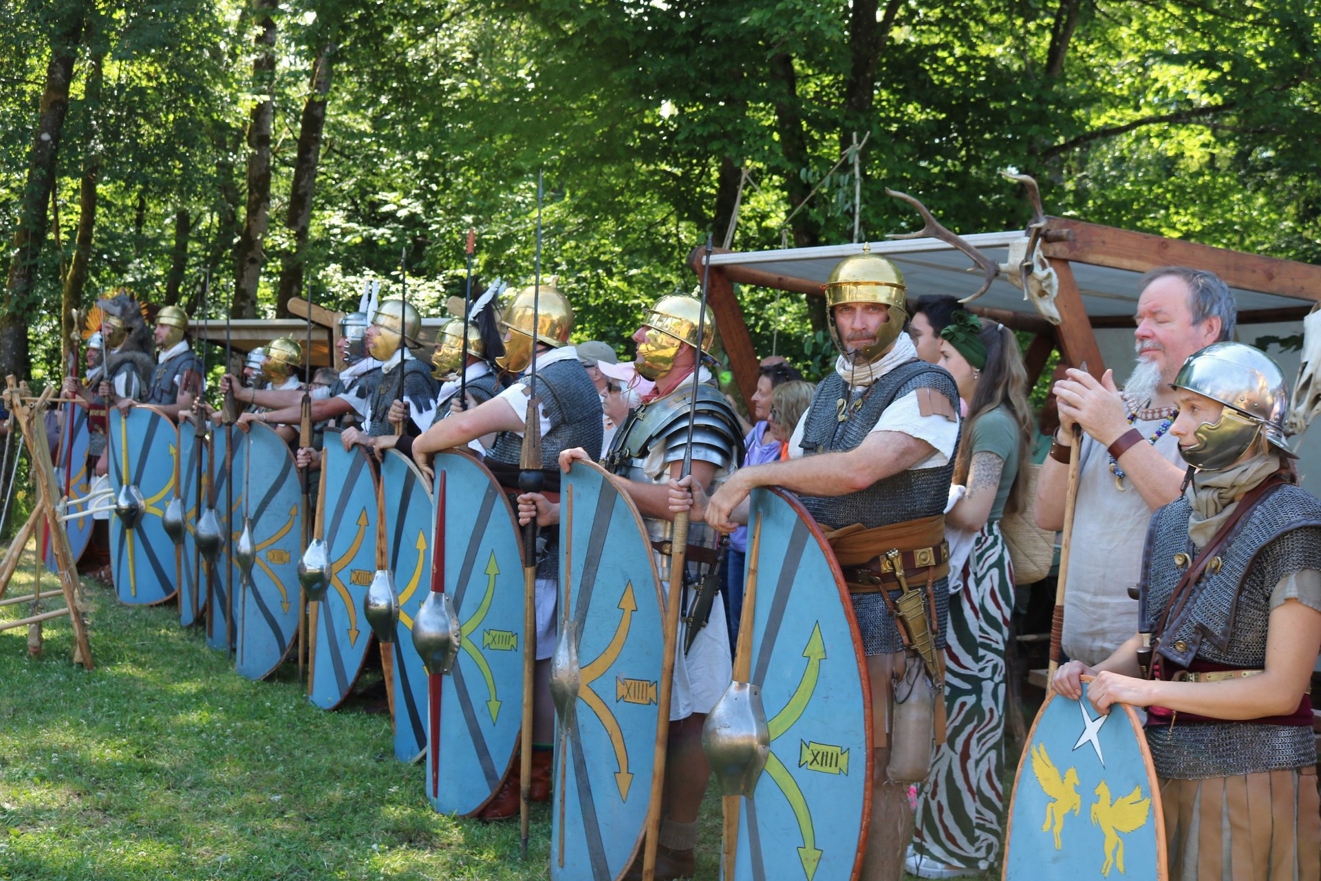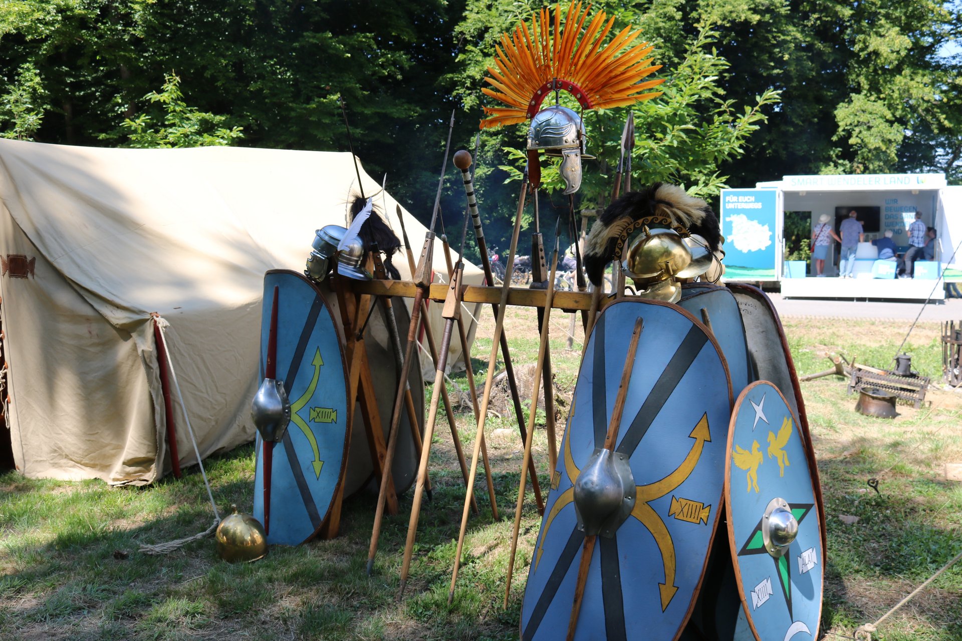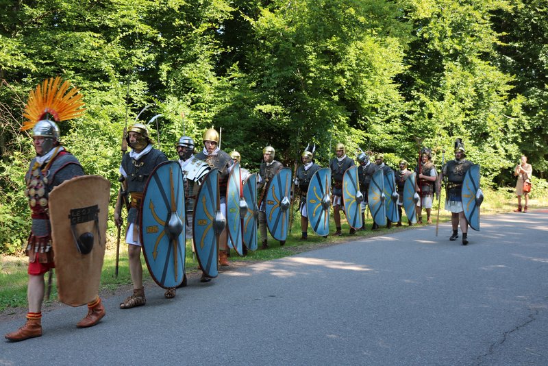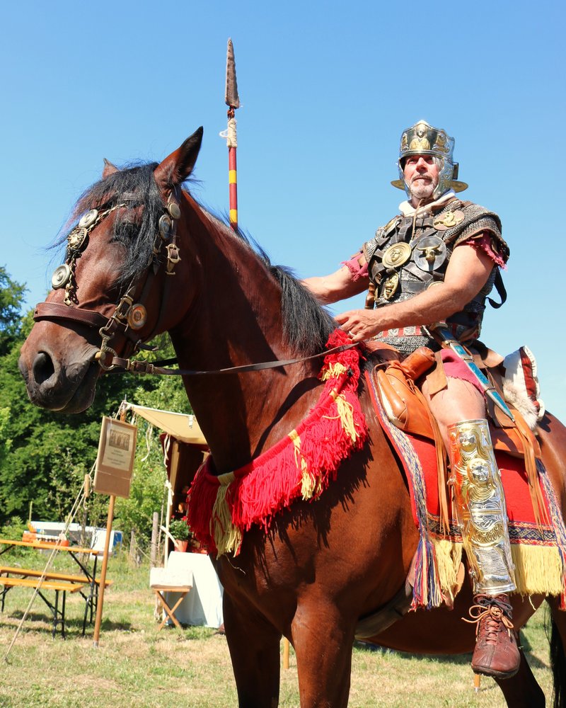 Die Keltengruppe der Treveromagos zeigte keltisches Handwerk (Holz- und Metallbearbeitung) und römische Legionäre mit Reitern der legio XIII Germania (Peter Klein aus Ottweiler) demonstrierten das römische Heerwesen.